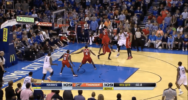Une défaite 111-109 au goût amer pour les Atlanta Hawks de Paul Millsap (23 points, 8 rebonds et 4 assists) hier soir à la Chesapeake Energy Arena, ayant mené les débats jusqu’à un avantage conséquent de 14 points en seconde période face au Thunder d’Oklahoma City. Comme à son habitude dans ces moments-là, Kevin Durant est sorti de sa boîte en inscrivant 41 points dont 13 dans le dernier quart-temps, le tout en délivrant 5 passes décisives. En guise de coup de grâce, le « Durantula » délivre les siens par un tir dont il a le secret, pourtant assailli par une horde rouge de trois joueurs à une poignée de secondes de la fin. Ficelle du chef, braquage et les protégés de Scott Brooks caracolent désormais seuls en tête de leur conférence, un huitième succès consécutif dans leur besace.
