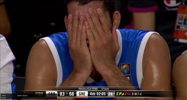 Dès l’entame, Milos Teodosic – qui était titulaire et qui a fini le match avec 13 points et 5 passes décisives – et ses petits copains démarraient sur un très gros rythme offensif avec notamment un énorme poster de Nikola Kalinic qui imprimait la marque du ballon sur la joue du grand Bourousis. Voilà qui posait les bases d’une rencontre que les Serbes avaient bien l’intention de jouer sur un très gros rythme. Les Grecs ont bien tenu la marée tout au long du premier quart (23 – 20) et même jusqu’à la mi-temps (46 – 42) grâce à la doublette de meneurs Nikos Zisis (12 points et 3 passes) et Nick Calathes (14 points, 3 passes décisives et 5 rebonds) ainsi qu’à l’activité d’un Georgios Printezis moins fringant qu’à l’habitude mais tout de même assez présent avec 12 points, 4 rebonds et 5 passes décisives. En face, les Serbes qui n’avaient pas été très réguliers depuis le début de la compétition, nous ont proposé un basket offensif de grande qualité et une intensité inattendue en défense.