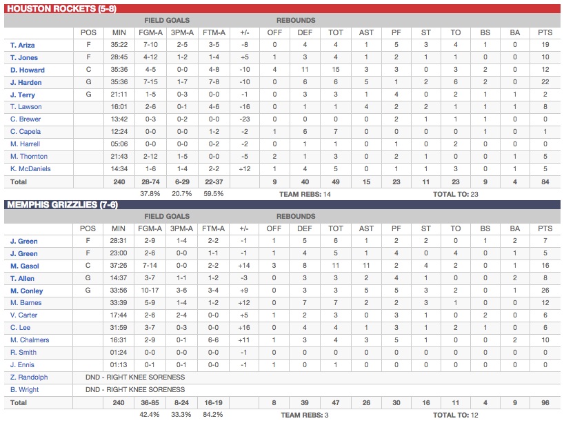 Ça va mieux pour Marc Gasol et les Grizzlies qui n’ont plus connu la défaite depuis une semaine. Grâce à une défense enfin retrouvée, Memphis a renvoyé les Rockets dans la morosité d’une franchise qui se cherche encore depuis ce début de saison (96-84).