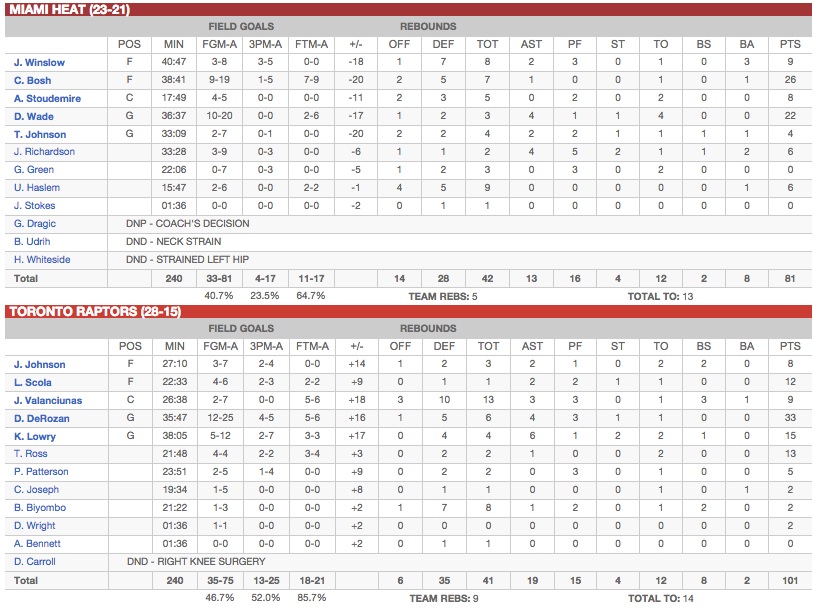 Le Heat prend froid à Toronto : 81-101, DeMar DeRozan encore bien vénère après les votes du All-Star Game