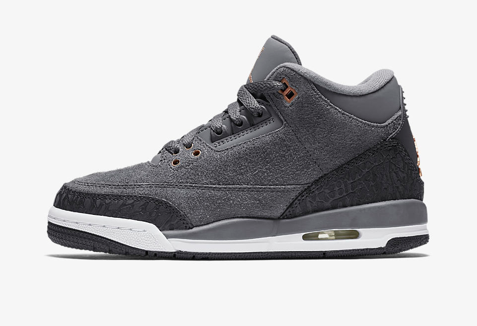Air Jordan 3 GS Bronze : une base grise associée à la couleur du métal