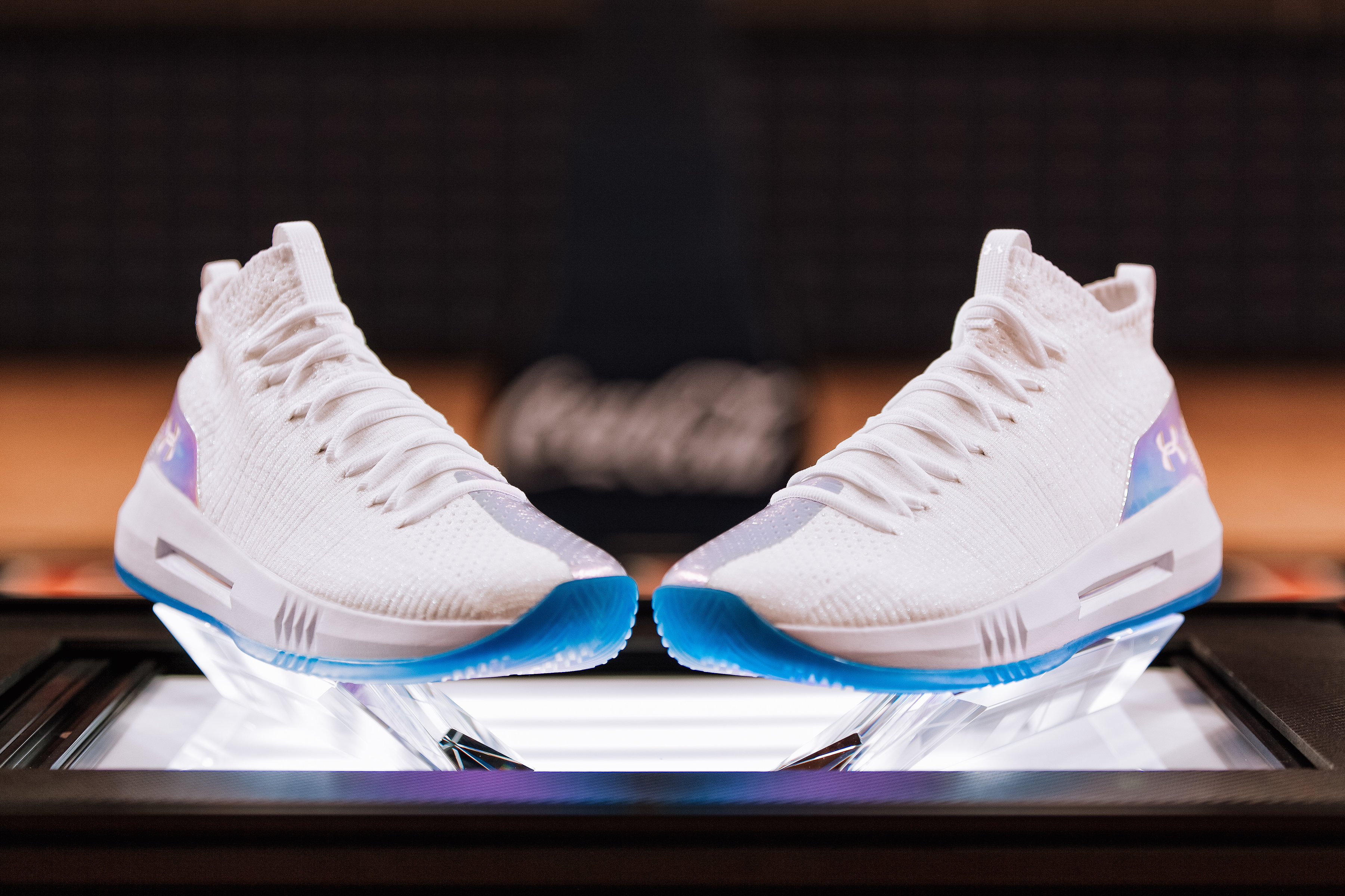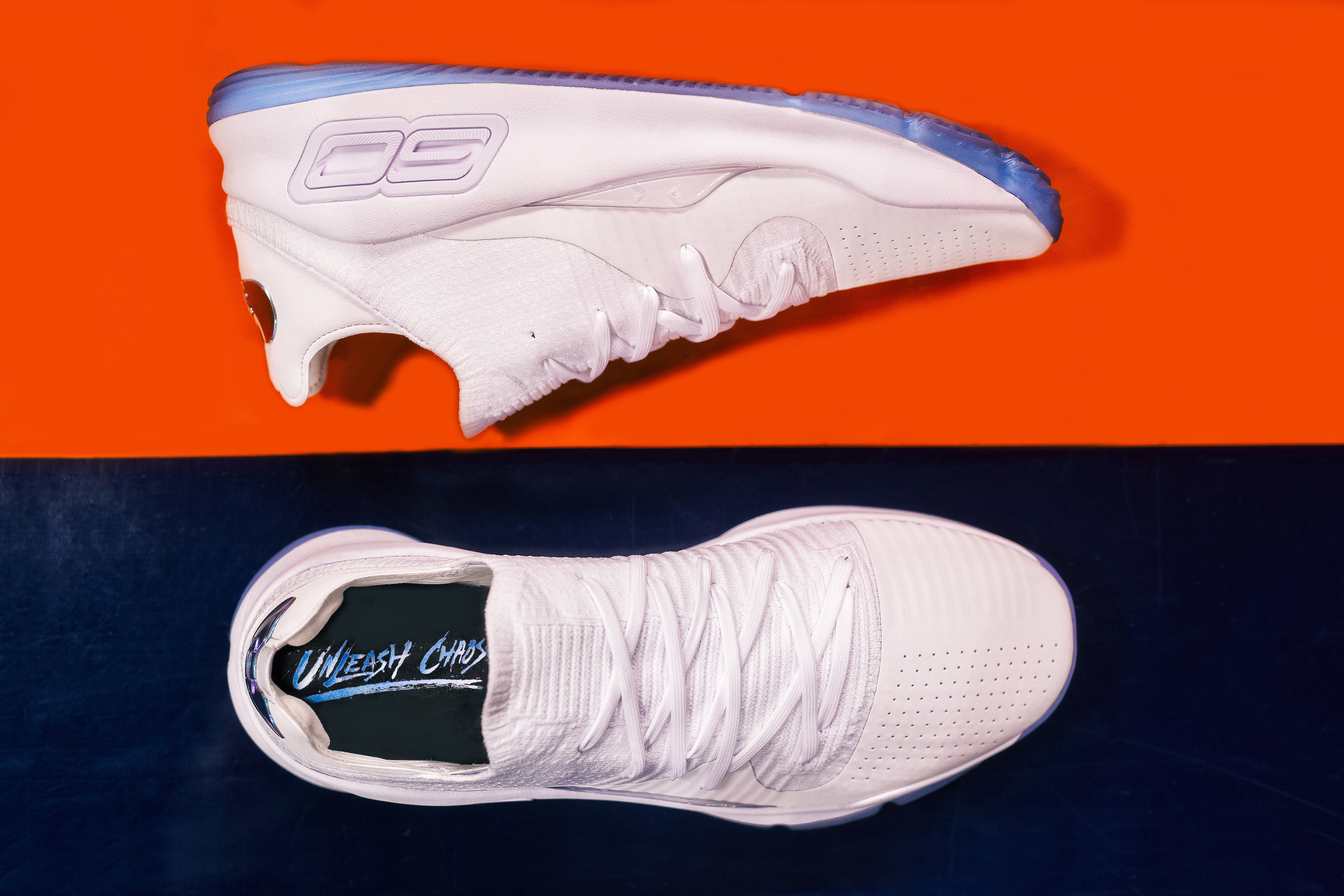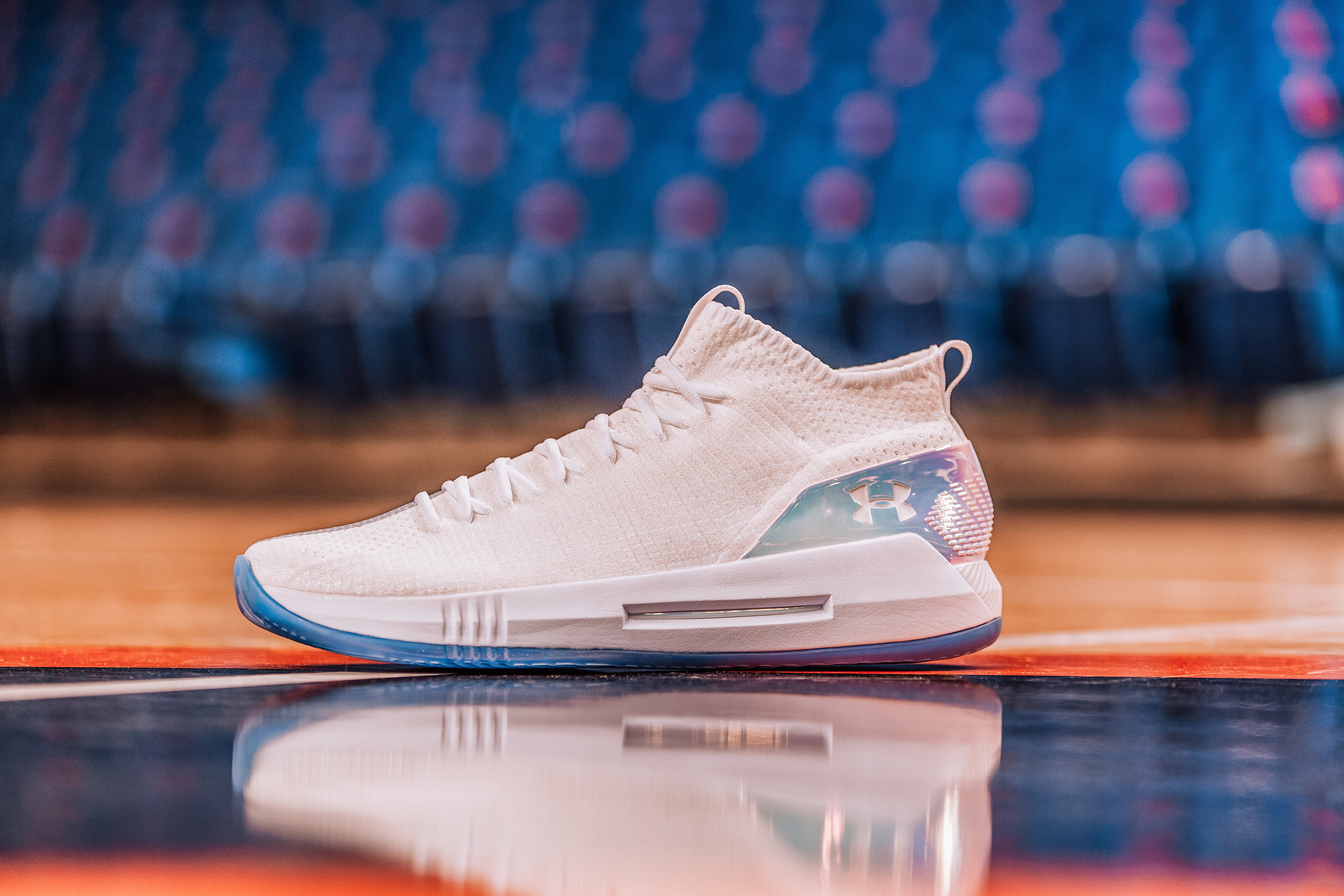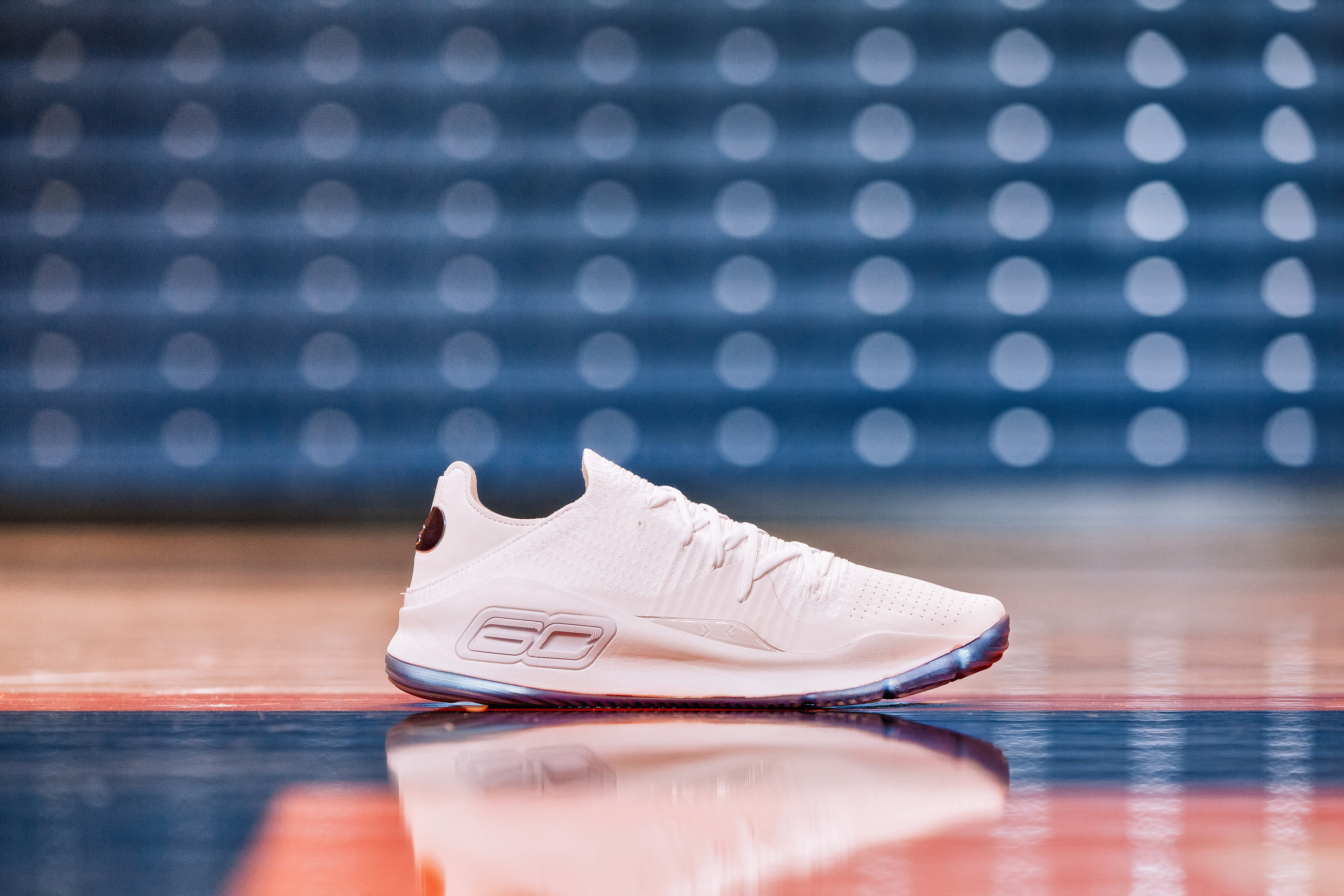 UCLA, Auburn, Notre Dame, Texas Tech, Maryland voici quelques universités qui s’habillent en Under Armour et qui voient donc débarquer des nouvelles pompes pour leurs joueurs de basket avec le printemps. C’est ainsi qu’au moment de débuter la March Madness, ces facs se sont vu offrir un joli package contenant des Heat Seeker ainsi que des Curry 4 Low pour briller durant le tournoi. Et pour briller, les pieds vont briller en effet. Les deux modèles sont très simples, avec une base blanche et du bleu ciel pour les détails et la semelle extérieure. L’avantage, c’est qu’avec de telles couleurs, on reste assez neutre pour coller à tous les jerseys.