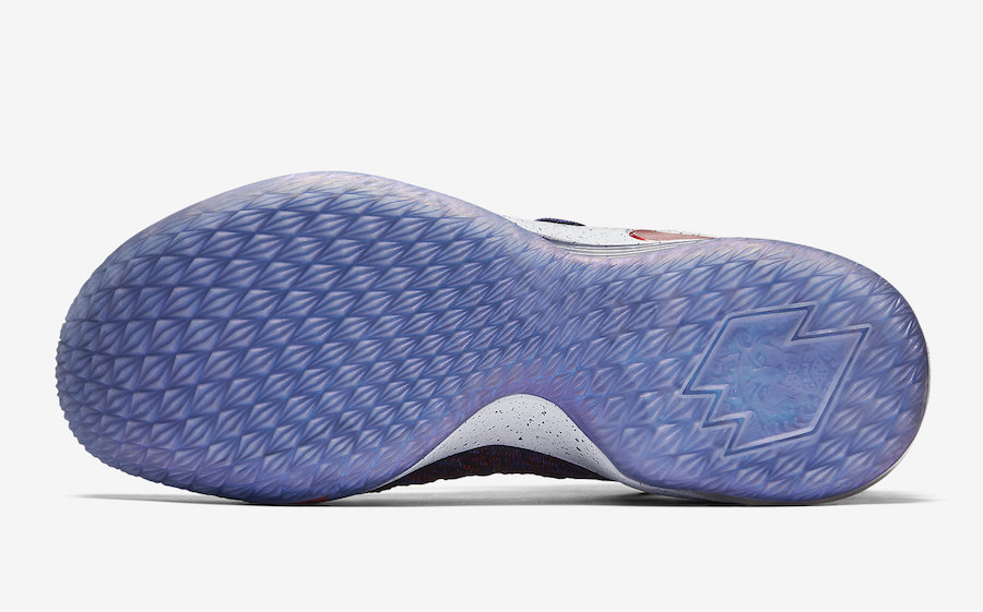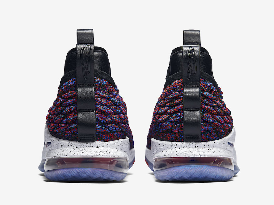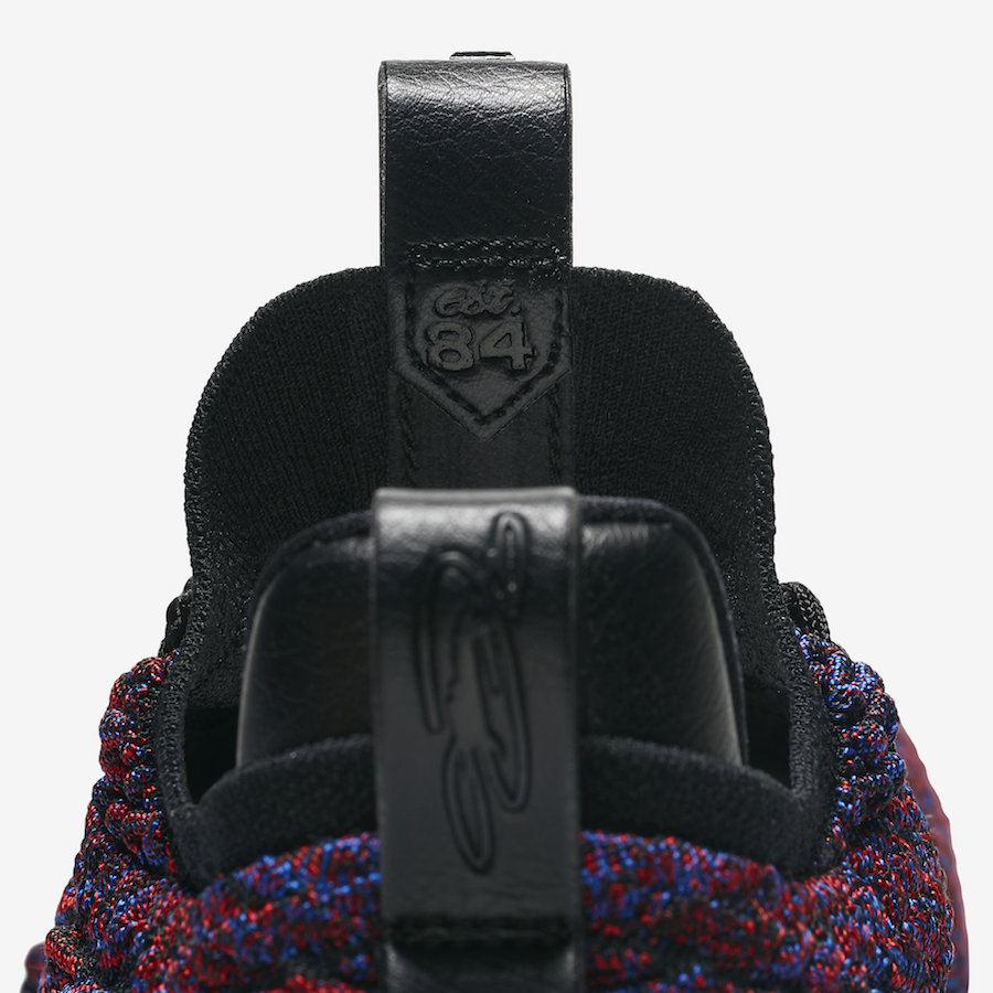 Un coloris qui avait fait forte impression si on en juge les commentaires et qui était très attendu. Plus besoin de prendre votre mal en patience si vous faites partie de ceux qui ont kiffé les LeBron 15 Supernova. Pour rappel, si on en croit nos amis de Wikipedia, une supernova est « l’ensemble des phénomènes qui résultent de l’implosion d’une étoile en fin de vie, notamment une gigantesque explosion qui s’accompagne d’une augmentation brève mais fantastiquement grande de sa luminosité. » Bon, on espère que l’étoile LeBron James est encore loin de l’explosion et de sa fin de carrière, même si à trente-trois piges on se doute bien qu’il est plus proche de la retraite que du début. Pour ce qui est des couleurs de ses pompes, on n’a jamais eu l’occasion de voir une supernova, mais les chaussures qui portent ce nom se composent d’un mélange de rouge et de bleu sur leur Battleknit. Du noir trace les contours et se place sur les lacets et le Swoosh du panneau latéral pendant que la semelle intermédiaire est blanche avec des pointillés. Celle extérieure reste translucide.