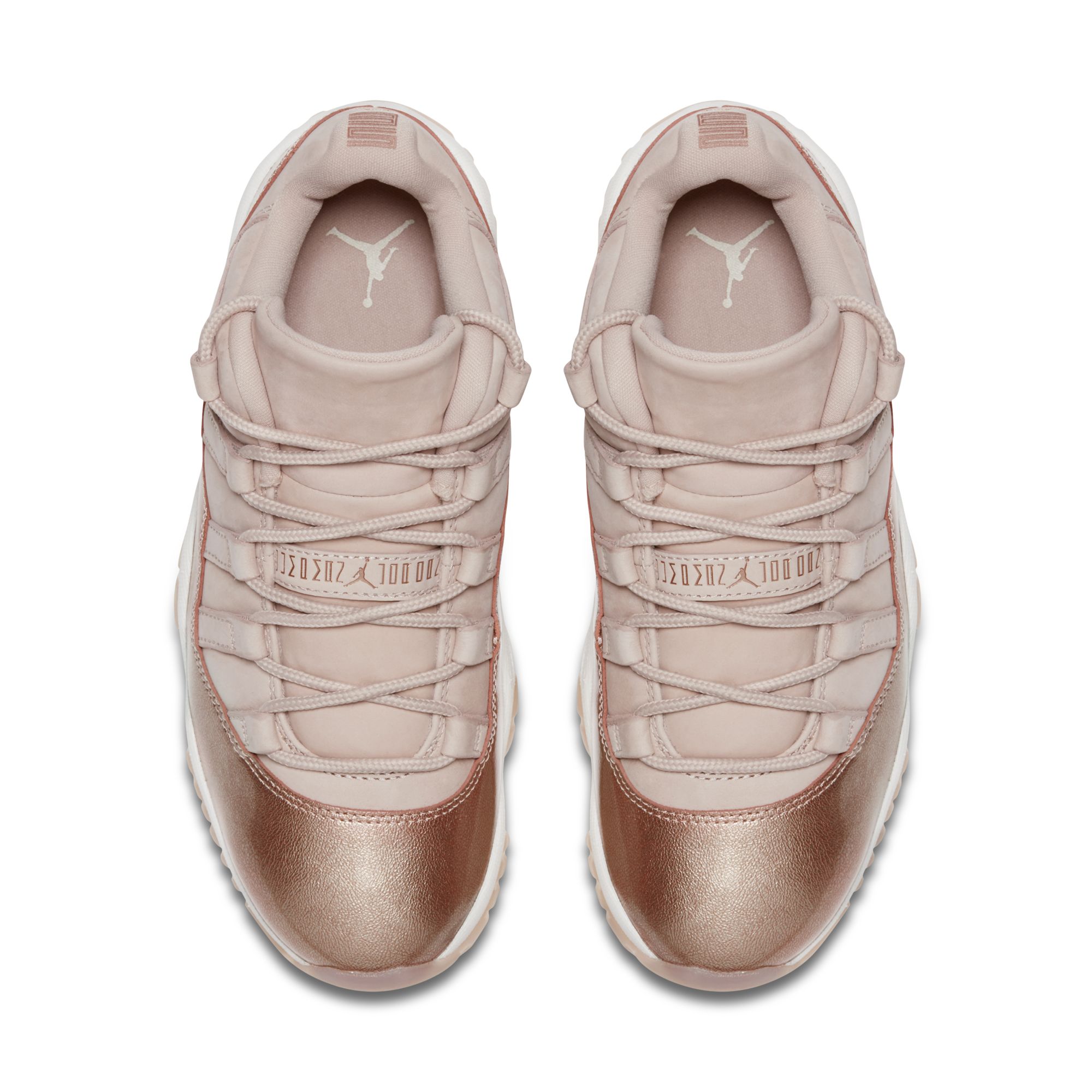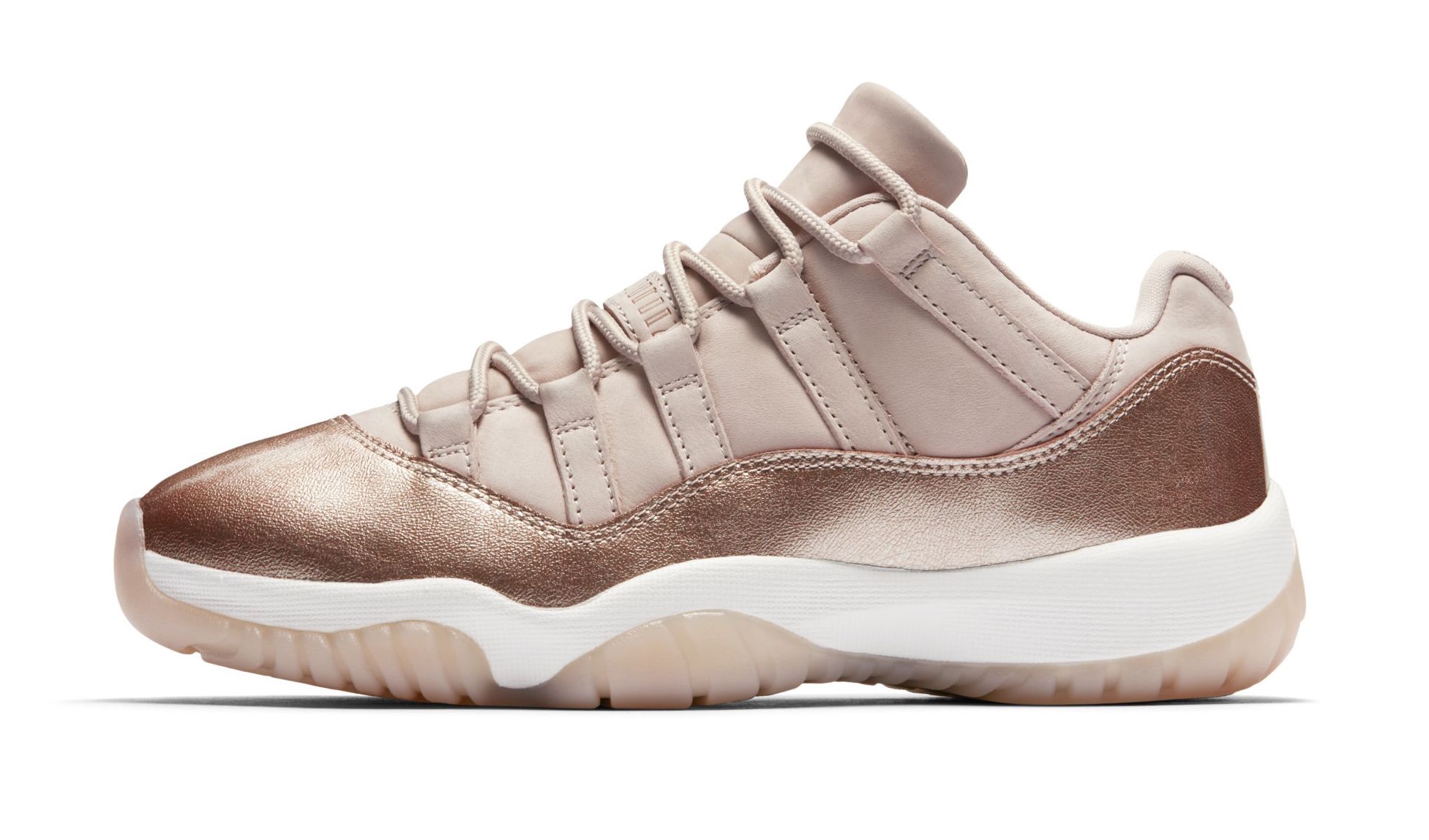 C’est maintenant une bonne habitude prise par Jordan Brand, le marché féminin connait régulièrement des sorties exclusives avec des modèles rétro qui bénéficient d’un traitement tout particulier pour plaire à ce public. Ce sont les Air Jordan 11 – qui ont déjà vu dernièrement une version GS débarquer – qui vont de nouveau vous être réservées mesdames avec ce coloris Rose Gold sur le modèle tige basse.