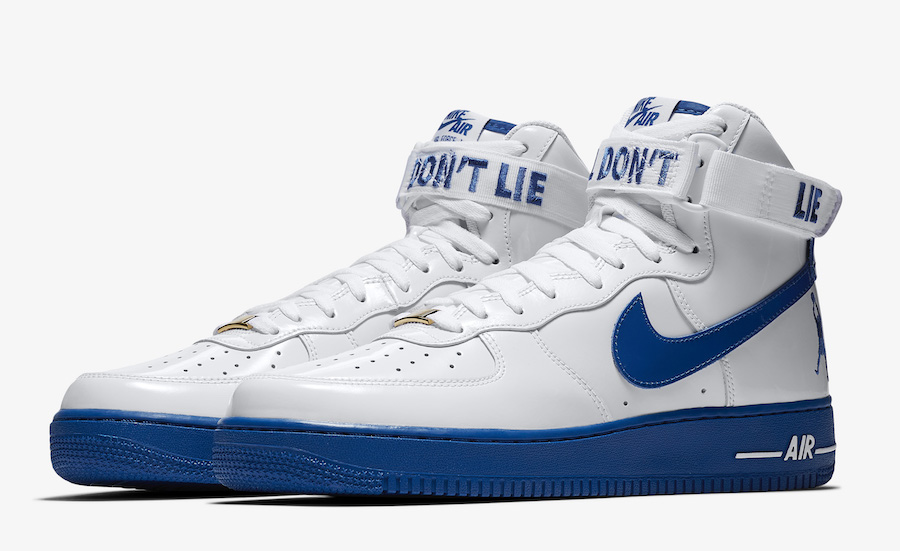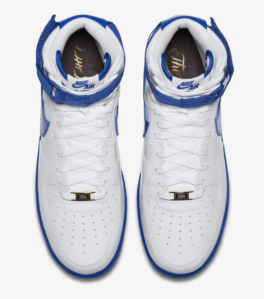 Ce soir du 13 juin 2004, alors que les deux équipes sont au coude à coude au milieu du troisième quart temps – 49 partout – le Sheed lutte en défense pour repousser les assauts de Shaq et Medvedenko. Bon ok, le second nom fait sourire, mais il va déclencher une réaction dont il ignore tout à cet instant. Dans la bataille pour la balle, le numéro 14 des Purple and Gold n’apprécie que peu l’agressivité de l’intérieur des Pistons et lui fait comprendre sa façon de penser d’un coup de coupe discret dans la poitrine de Dirty 30. Un geste qui va faire monter Wallace dans les tours, le Sheed invectivant son adversaire en lui offrant en bonus une tape amicale mais ferme au postérieur. De quoi lancer définitivement son match puisque l’ailier fort de Detroit va élever son niveau de jeu pour boucler la rencontre sur 26 pions, 13 rebonds, 2 interceptions et 2 contres, avec en prime la victoire au bout. En ce qui concerne ses pompes ? Des Air Force 1 High Sheed, blanches avec quelques touches de bleu, à l’instar du maillot de sa franchise. Elles reviennent donc ornées de leur languette au niveau de la cheville sur laquelle on retrouve le fameux « Ball don’t lie » ainsi que le numéro 30 de Rasheed Wallace. Quant à sa silhouette, elle est bien présente sur le côté de la cheville, juste au-dessus de la semelle bleue.