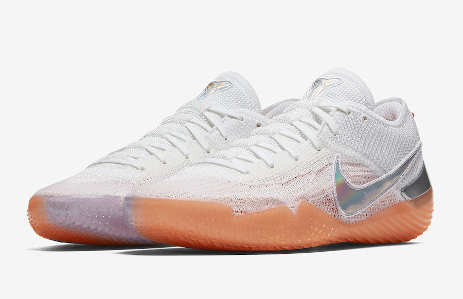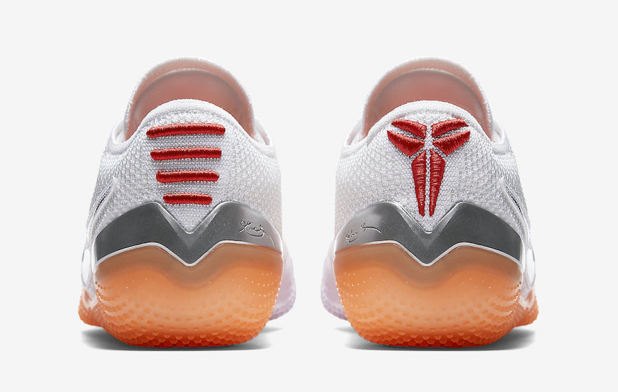 Il n’y a pas à dire, dès qu’on parle des groles de Kobe qui existent en tige basse, on a tout de suite l’envie de sortir le même mot : classe. Si certains coloris sont forcement plus réussis que d’autres, le design global caractéristique des sneakers du Black Mamba nous plait toujours autant. Un mélange de propreté et de style qui colle parfaitement à Kobe Bryant – sauf si vous voulez parler de ses soirées arrosage automatique – et qu’on retrouve une fois de plus sur ces Kobe AD NXT 360. Dans cette version Infrared, cet abord qui nous ravit resurgit en grande partie grâce à la base en Flyknit blanche qui recouvre une grande partie du modèle. Le fourreau qui sert de logo au niveau de la languette ainsi que les Swoosh sur les panneaux latéraux prennent un aspect irisé tandis qu’un renfort gris s’applique au-dessus du talon. Si on parle d’infrarouge, c’est pourtant du orange translucide qui complète ce look avec une semelle qui prend cette teinte. Mais du rouge il y en a tout de même puisqu’un autre logo fourreau est de ce ton à l’arrière du modèle, tout comme la semelle intérieure.