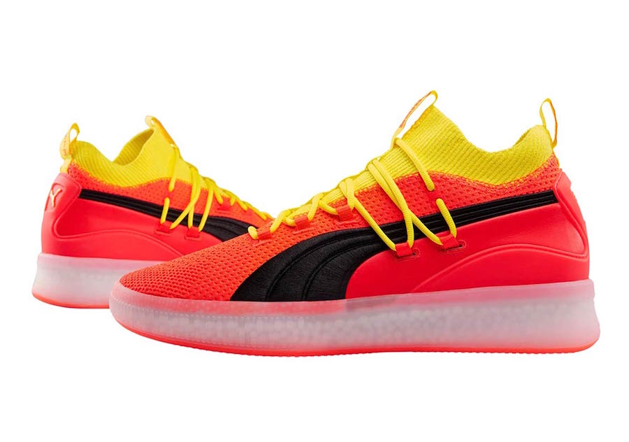 On le sait, la guerre des sneakers est largement dominée par Nike et sa branche Jordan Brand, équipementiers officiels de la Grande Ligue et cordonniers de nombreuses stars NBA. Pour autant, le retour de Puma souffle un vent de fraîcheur dans le monde de la chaussure de basket. Déjà, elle rappelle de nombreux souvenirs aux fans un peu old-school. Puis, la marque au félin espère aussi s’imposer avec son caractère et son style bien particulier. Avant de passer à la présentation des photos dans le détail, on vous prévient : mieux vaut mettre ses lunettes de soleil pour ne pas faire une crise d’épilepsie devant cette paire résolument colorée qui fait le choix du fluo pour attirer tous les regards. L’oeil ne sera plus seulement attiré par le ballon mais aussi les panards du récent premier choix de Draft lorsqu’il finira accroché au mur d’une chambre d’ado sur un poster de l’un de ses magazines préférés.