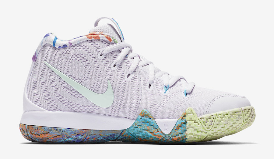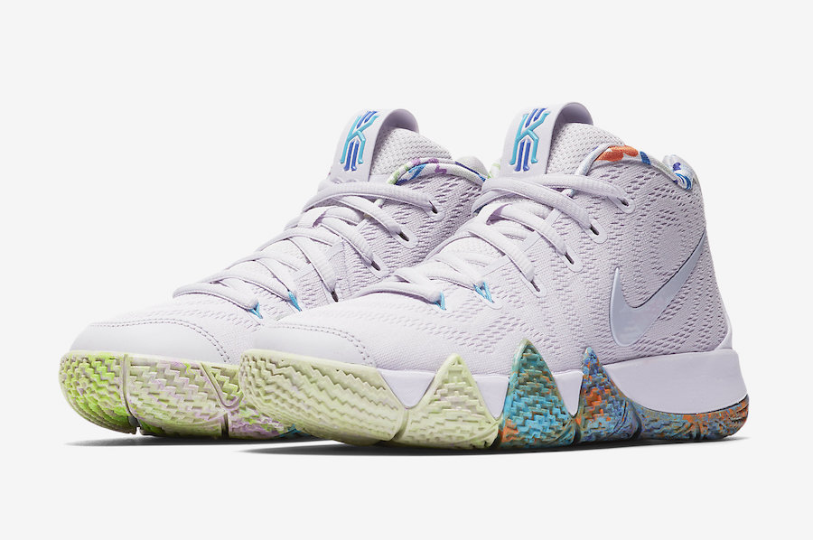 Commandez chez B4B la nouvelle Nike Kyrie 4 90’s, dernière paire du « Kyrie 4 Decades Pack », dont le coloris s’inspire des cartoons du samedi matin que Kyrie aimait regarder.