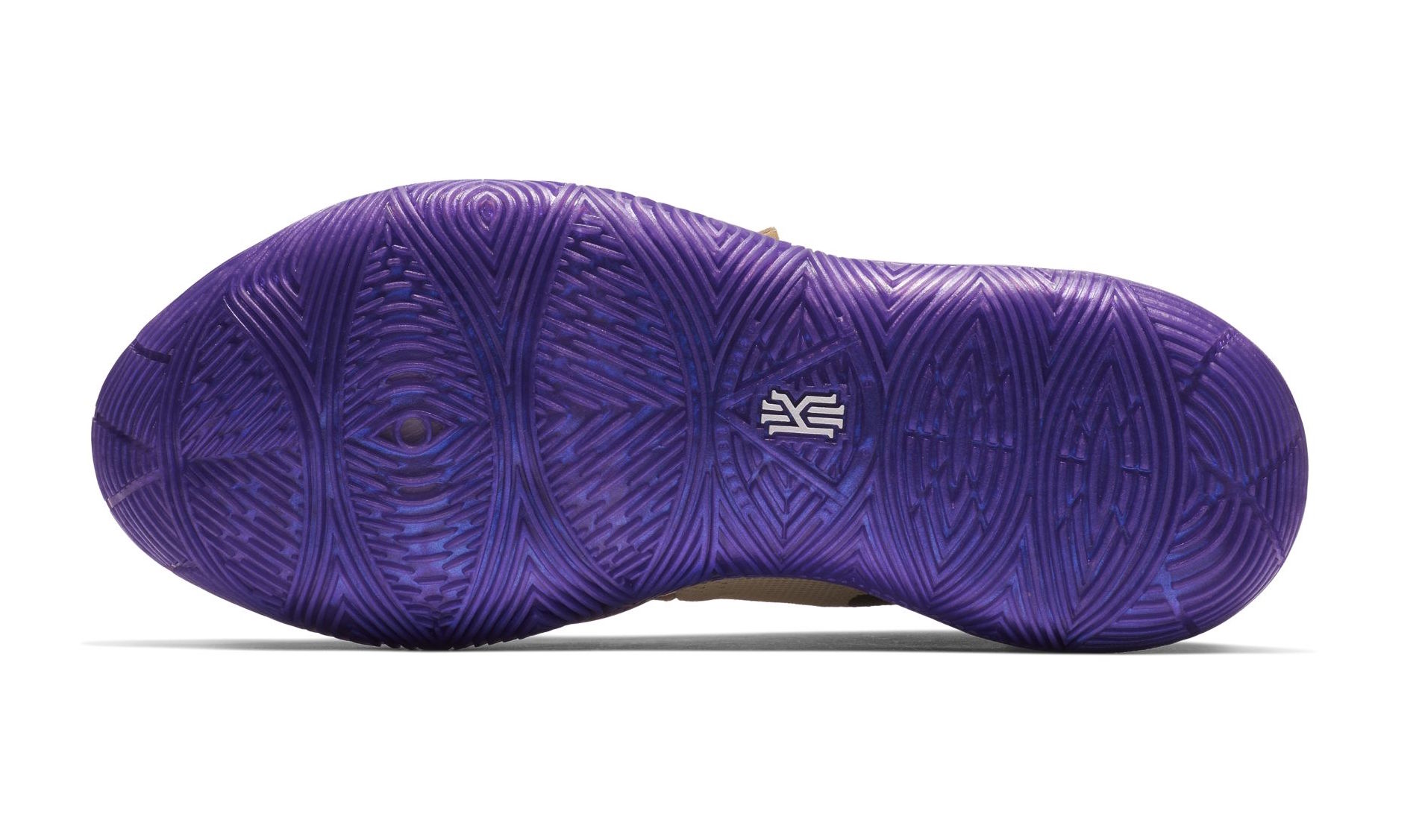 Pour ce modèle, l’inspiration est puisée sur le bras du meneur des Celtics, et plus précisément sur son tatouage, la main de Fatma qui avait fait beaucoup parlé aux States – selon certains, l’œil présent dessus signifiait que Kyrie Irving était un Illuminati. Mais ce n’est pas le complot ou encore une histoire de Terre plate qui s’affiche sur cette nouvelle version, Nike et Concepts nous envoyant plutôt en Afrique du Nord – et plus particulièrement en Egypte – où la Khamsa est très répandue. On retrouve donc un upper beige qui rappelle la couleur des pyramides, alors que le bout de la languette en rouge fait référence au nez cassé du Sphinx, d’où le contraste fort dans les teintes. On va également retrouver plusieurs détails en lien avec l’ancienne Egypte comme des hiéroglyphes au dos du modèle, alors que la semelle violette représente le coucher de soleil sur les tombeaux des pharaons.