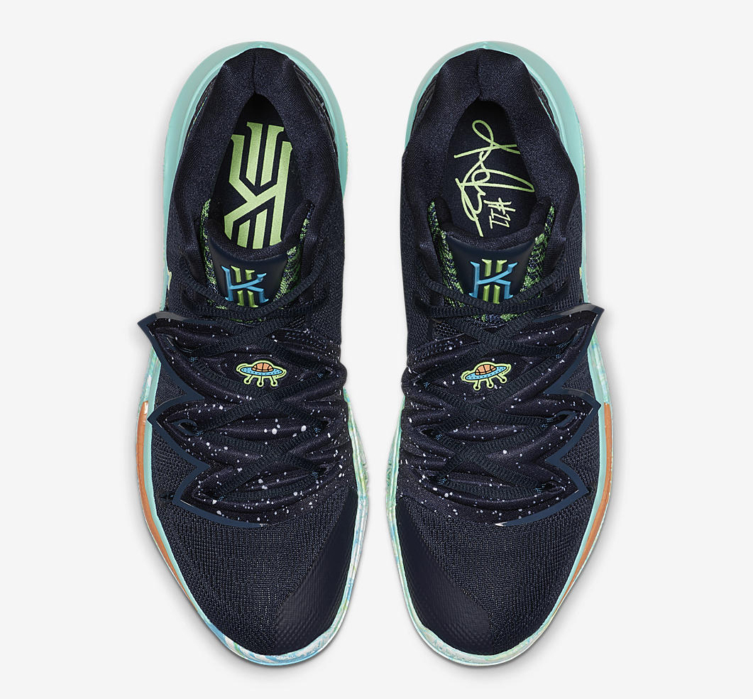 Si Paul George est envoyé sur la lune par Nike via les PG 3 NASA Apollo Missions, la firme de l’Oregon propulse également Kyrie Irving dans l’espace avec cette version UFO des Kyrie 5.