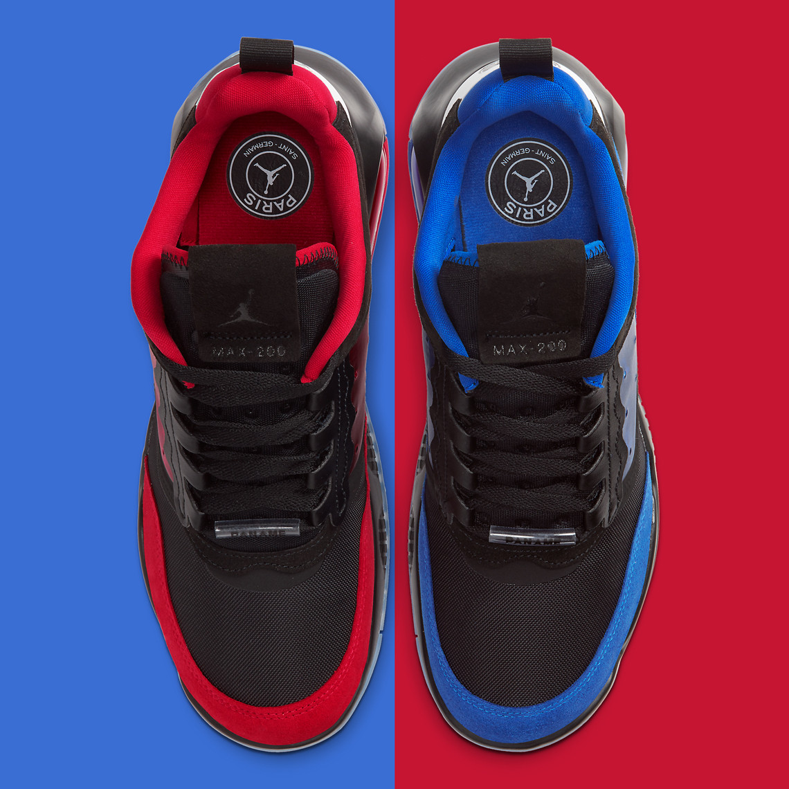 Si vous nous connaissez un peu, vous savez qu’on n’a pas trop l’habitude de parler du petit ballon rond par ici. Mais il arrive quand même que des ponts soient créés avec nos cousins footeux. Demandez voir à tous ces Américains qui portent du PSG depuis quelques années s’ils ont maté plus d’un match de Paris ou s’ils sont capables de nommer d’autres joueurs que Neymar et Mbappé. S’ils de disent prêts à faire le déplacement à Libourne-Saint-Seurin juste pour voir un match de Coupe de France il faudra quand même vous méfier. Soit vous êtes tombés sur un vrai de vrai, soit il vous mène en bateau depuis le début et dans ce cas là on ne pourra plus rien pour vous. Toujours est-il que les fanboys de Paname pourront enrichir leur garde-robe avec une nouvelle pièce de qualité. La Jordan Air Max 200 PSG ne devrait pas avoir de peine à trouver son public avec son style dépareillé unique. Du bleu à gauche, du rouge à droite (ça c’est pour brouiller les pistes de ceux qui ont l’habitude de mettre l’écouteur bleu dans l’oreille droite) mais aussi des petits détails sympas comme l’inscription « Paname » au milieu des lacets et surtout un logo du Paris Saint-Germain redessiné avec un Jumpman au centre au niveau du talon. Pas de doute, on est en France et la petite fleur de lys nous le rappelle au cas où sur la languette arrière. Louis XIV aurait kiffé sans aucun doute !