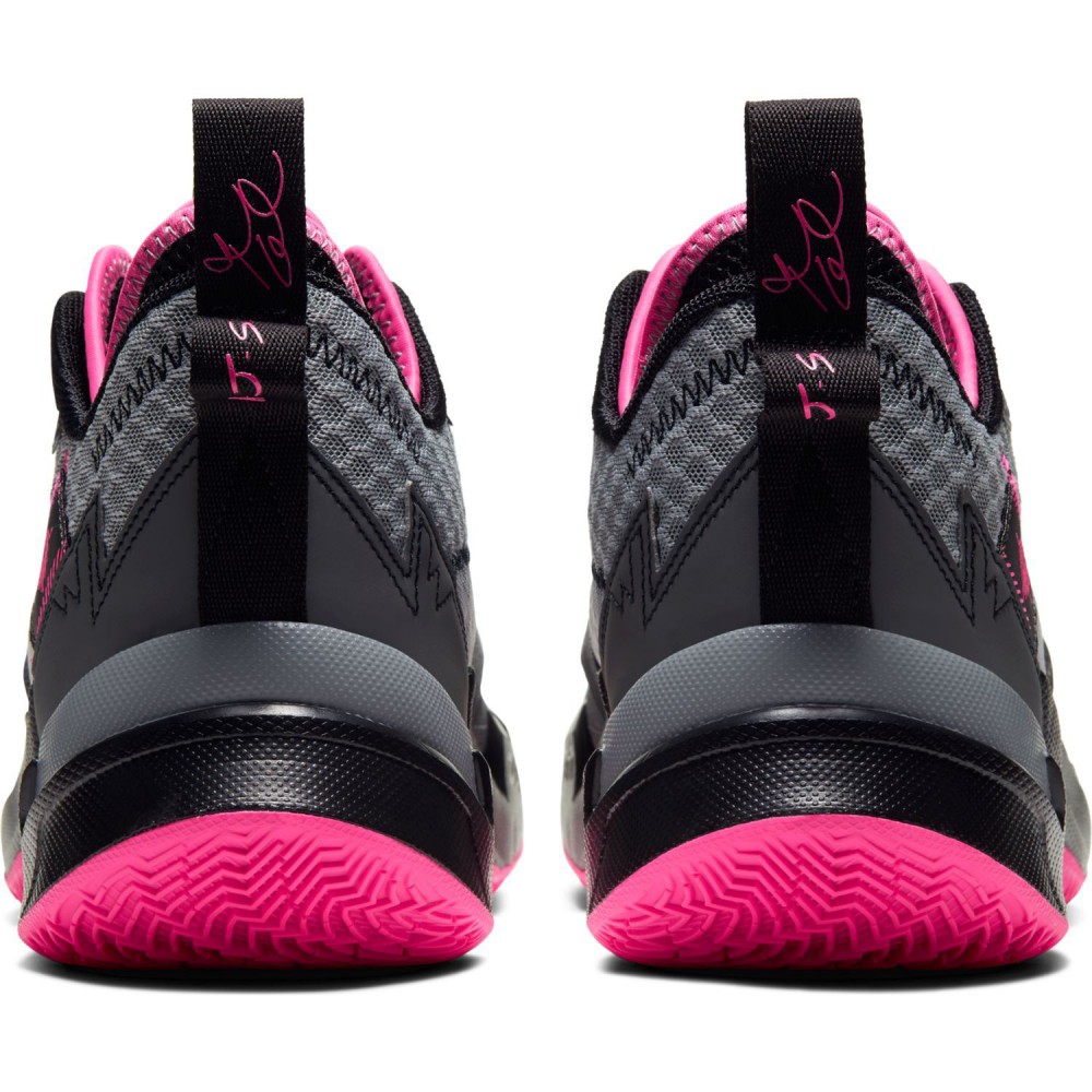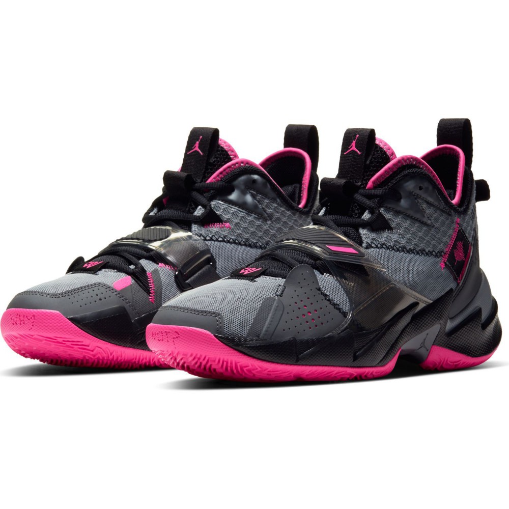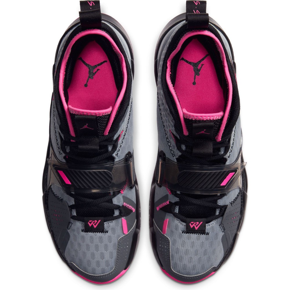 On le sait depuis son discours de MVP et même bien avant cela, la famille a toujours été le plus important pour Russell Westbrook. Que cela soit son frère dont il est le premier fan ou sa femme et ses enfants, le numéro 0 donne tout sur le terrain pour rendre fier sa mif. Et parfois, il leur glisse même quelques petits clins d’oeil avec sa garde robe. Mais pas question de défilée de haute couture aujourd’hui, ou on concentrera en tout cas notre vue à la hauteur des pied lors de sa prochaine apparition au Toyota Center. Car ce sont les Jordan Why Not Zer0.3 Heartbeat qui nous intéressent aujourd’hui. Un surnom qui trouve son explication avec la récente naissance de ses deux filles jumelles qui se retrouvent donc au centre du quotidien de Russ et de sa femme Nina. Un coloris peu original puisqu’il associe des couleurs foncées comme le gris métallique et le noir avec le rose qui serait visiblement présent un peu partout dans la chambre des twins. Une manière aussi de préparer la journée internationale de la femme prévue ce dimanche alors qu’on notera surtout ce petit coeur rose brodé sur une étiquette de chaque côté de l’objet pour rappeler à chaque pas que Westbrook est avant tout un père de famille.