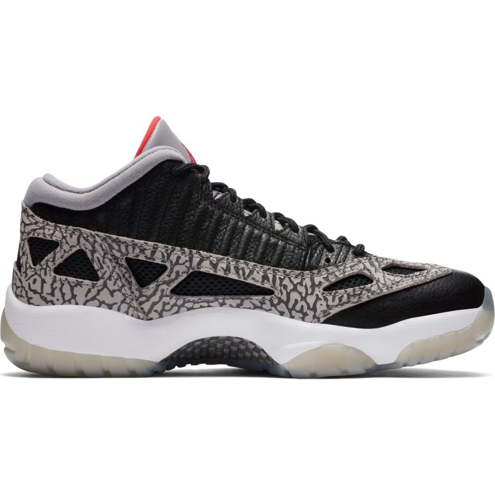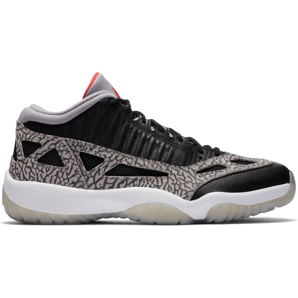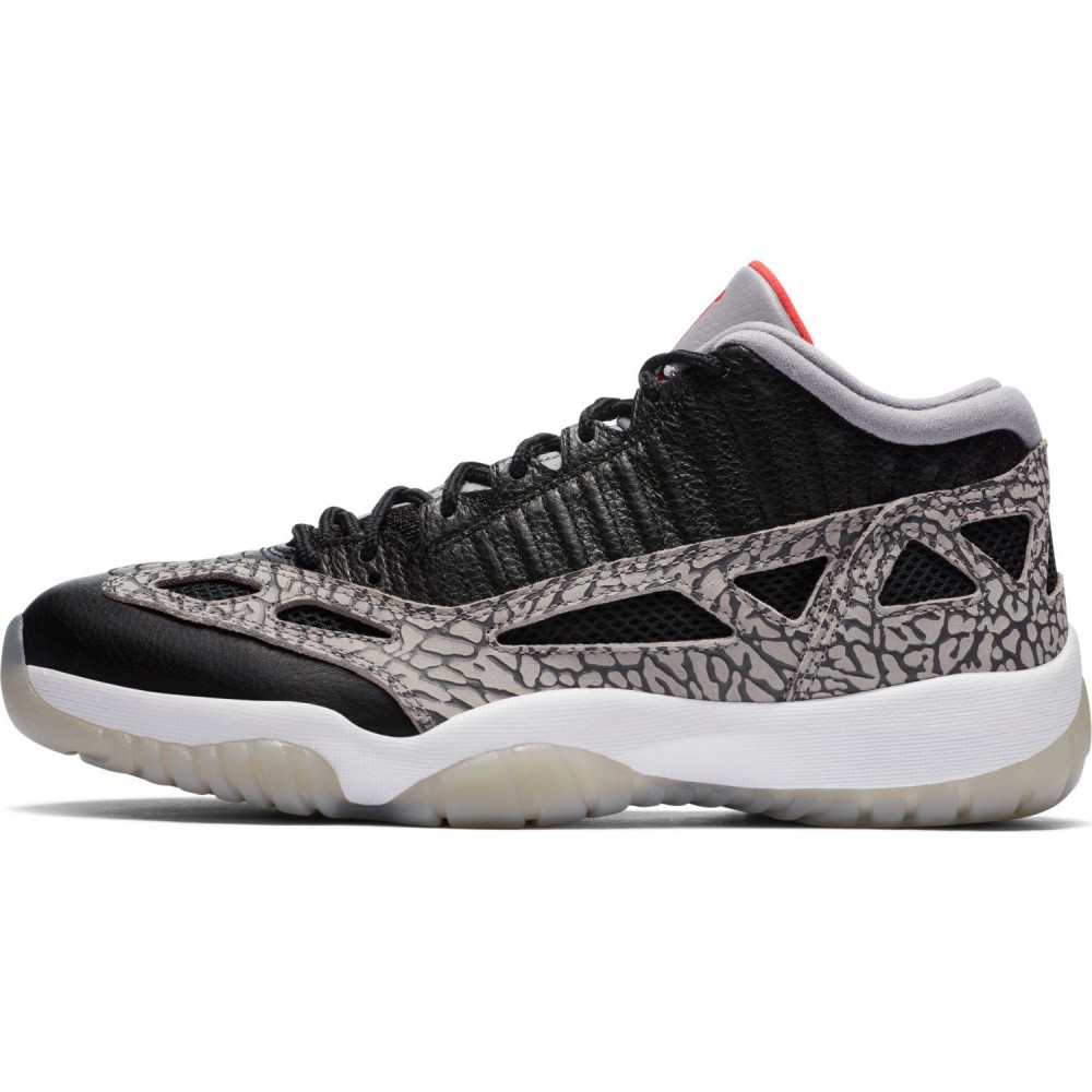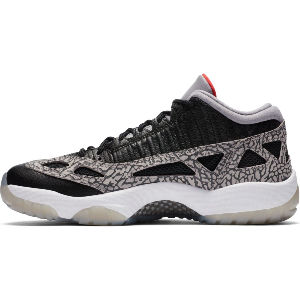 Procurez-vous maintenant sur Basket4Ballers.com la Air Jordan 11 Low IE dans un coloris « Black Cement » fabriquée avec des materiaux légers et respirants et agrémentée du mythique Elephant Print.