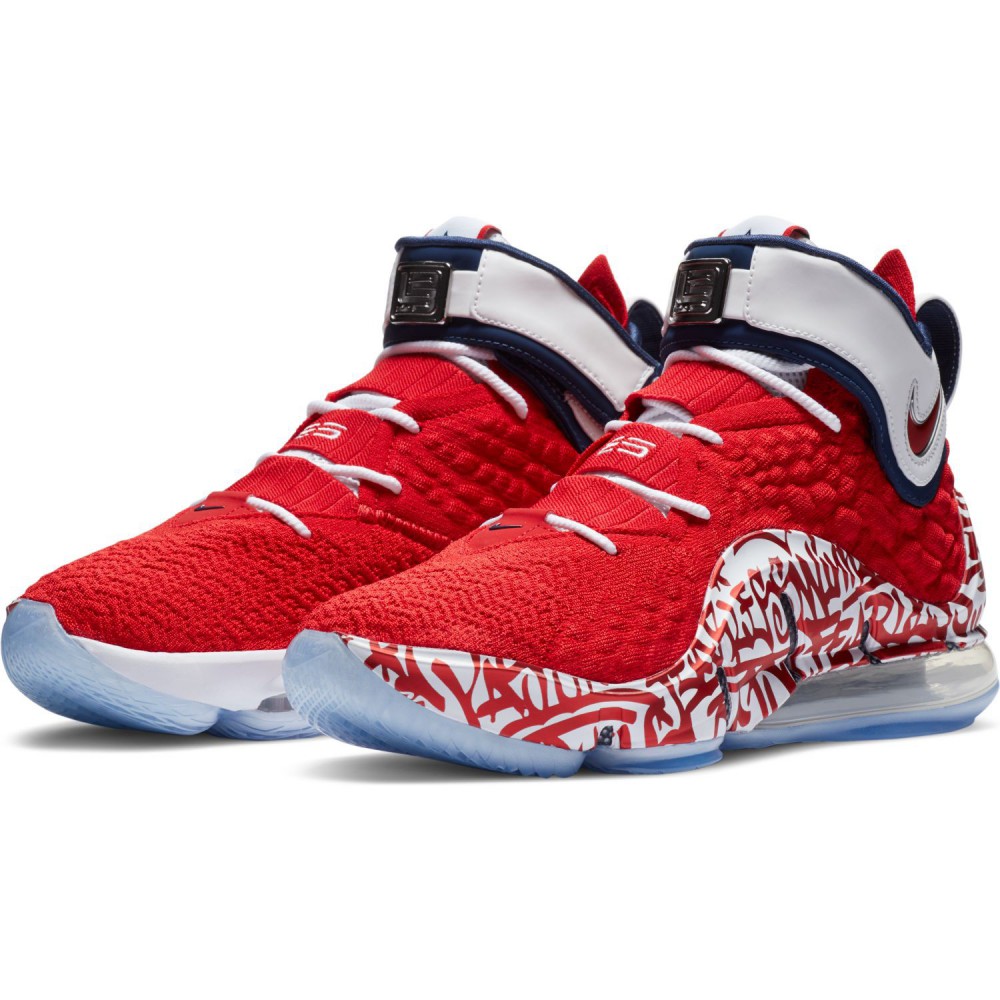 Procurez-vous maintenant sur Basket4Ballers.com les Nike Lebron 17 FP Graffiti dans deux coloris bleu et rouge pour hommes et femmes et arborez les couleurs des équipes olympiques américaines de basketball.