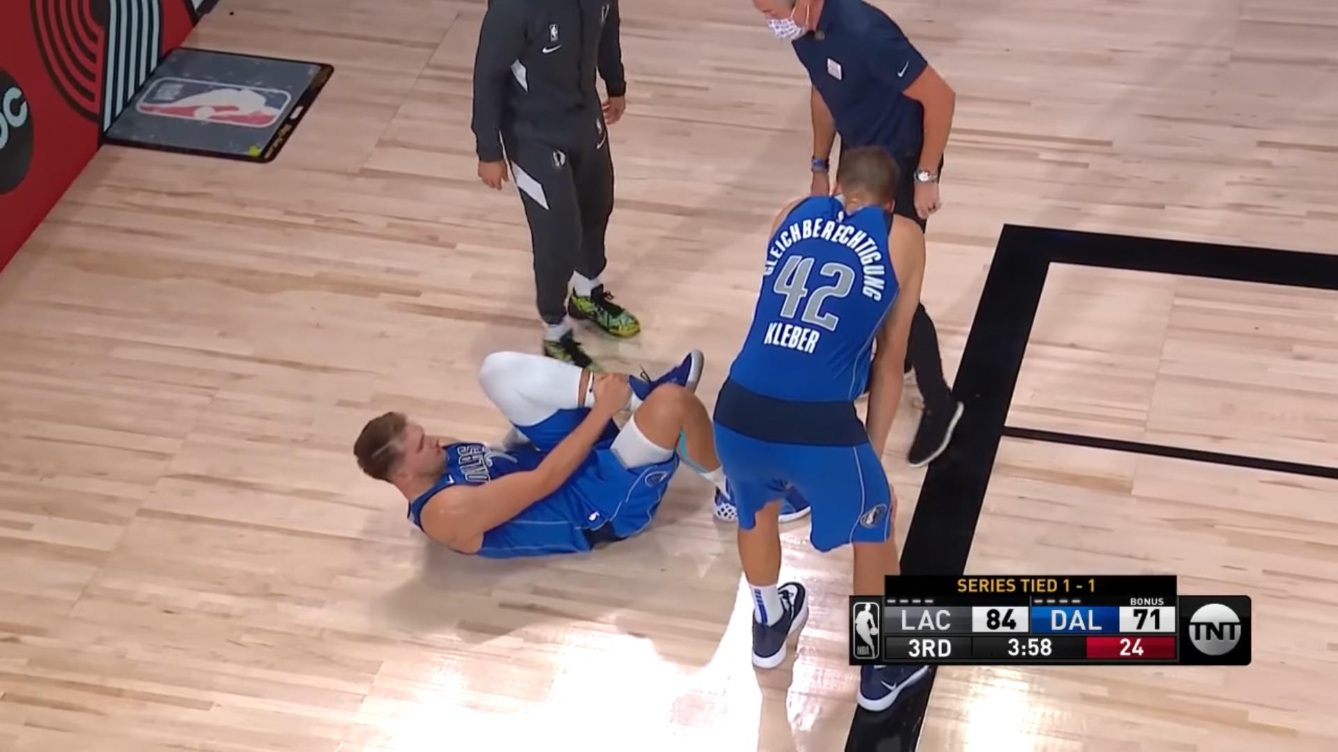 Luka Doncic heads to the locker room after turning his ankle pic.twitter.com/TKQ04xCf64