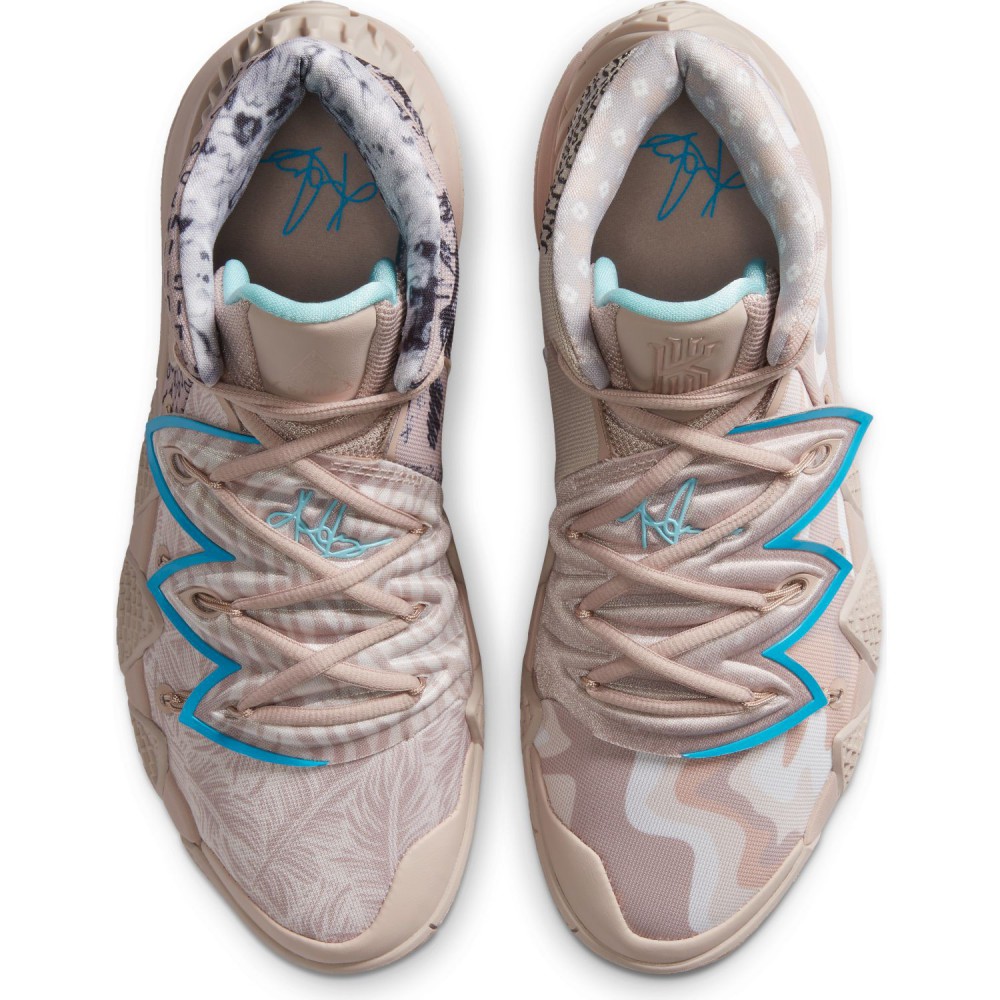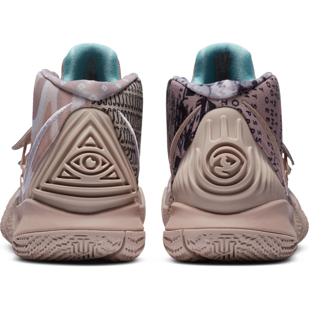 C’est comme les Mr. Freeze, il y en a vraiment pour tous les goûts et de toutes les couleurs dans la gamme d’Uncle Drew. Pas de version fluorescente cette fois, puisque l’on part sur un modèle au coloris intitulé Fossil Stone. Le genre de trouvaille qui aurait rendu fier Indiana Jones après avoir risqué sa vie au fin fond d’une grotte située au milieu de l’Amazonie. Un bijou d’autant plus rare qu’il s’agit de la première version de ce nouvel hybride des pompes du meneur des Nets baptisé Nike Kybrid S2. On retrouve évidemment les influences de la Nike Kyrie 6 grâce à ces deux yeux évocateurs sur le talon, mais également de la 5 avec ce couvre languette pointu ainsi que de la 4 avec cette semelle dentelée. Bref, on a pris tout le meilleur des dernières pompes du coéquipier de KD pour les rassembler dans une seule et même chaussure. Comme on peut s’y attendre avec un tel nom, les tons sont clairs, entre le beige, le jaune sable et le crème. Le motif varie et passe du camouflage à une liste de lettres sur lesquelles on pense déchiffrer le message « Spotlight ». Car si une chose ne change pas, c’est que lorsqu’il joue Kyky a horreur qu’on ne le regarde pas.