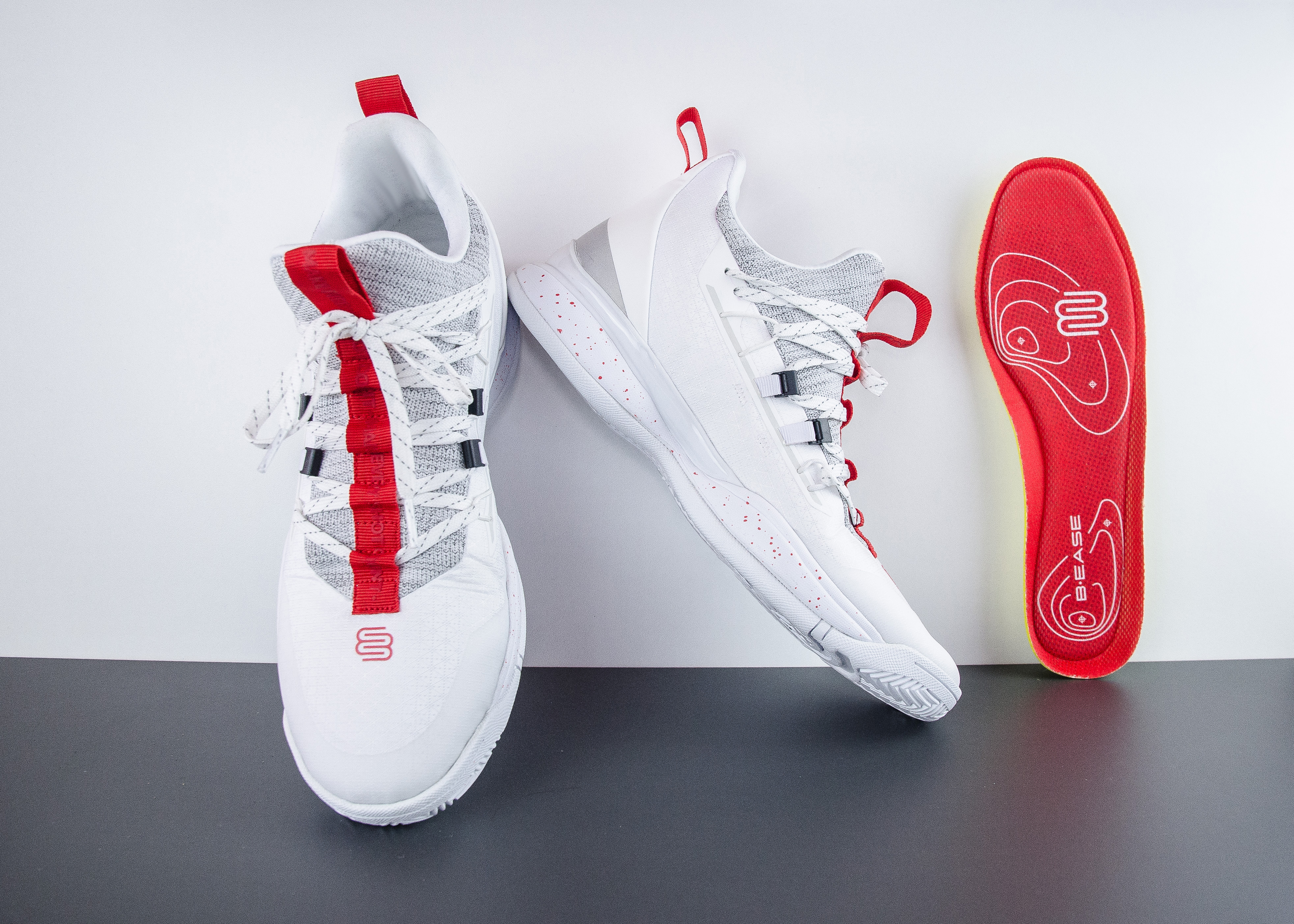 Créée en 2017, B.EASE est connue pour concevoir ses sneakers et autres produits de manière participative en questionnant directement les basketteurs et les basketteuses sur le bitume et les parquets afin de cibler au mieux leurs besoins. On les a notamment déjà vues aux pieds de Livio Jean-Charles, drafté au premier tour par les Spurs en 2013 et qui faisait encore le bonheur de l’ASVEL la saison dernière. Si on découpe un peu le nom de la firme, le B initial fait évidemment référence au sport préféré de ton sport préféré. Ease désigne la simplicité de pouvoir jouer pratiquement n’importe où et n’importe quand à la seule condition de disposer d’un ballon et des chaussures adéquates. Enfin, Be at ease peut se traduire par être à l’aise. Vous l’aurez capté, les concepteurs misent tout sur le confort d’utilisation, qui fut le principal critère réclamé par près de la majorité d’un panel formé par 415 joueuses et joueurs (48%). Mais on est habitués à la rengaine depuis longtemps, chausser des souliers douillets n’est pas suffisant et il faut également accompagner la performance des pratiquants à tous les niveaux tout en conservant cette notion de style si importante au moment d’arriver au terrain pour lancer un pick-up game avec des inconnus ou au match du week-end. C’est l’idée à l’origine de la SUSPENDED qui concentre tous ces atouts.