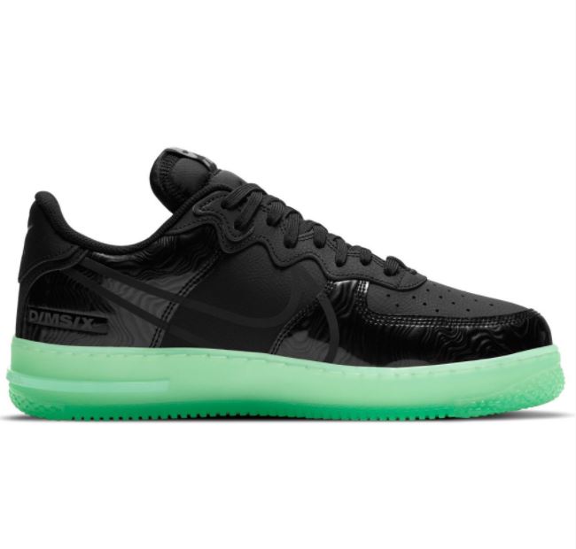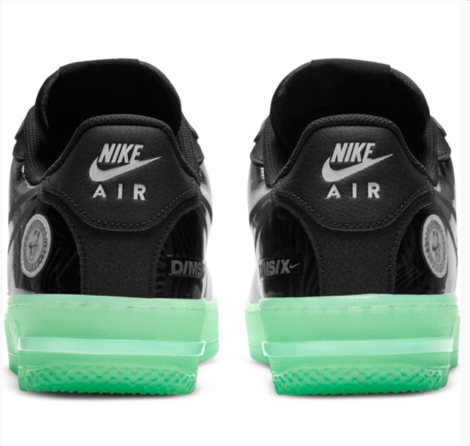 Nike a sorti un modèle Air Force 1 All Star édition 2021. Heureusement que la marque à la virgule est là pour donner du baume au cœur par suite de ce GRAND, que dit-on, ÉNORME spectacle que fut le All-Star Game 2021. Le modèle historique de l’AF1 de Bruce Kilgore s’affiche aujourd’hui comme LA paire de chaussure la plus vendue de toute la marque et un incontournable. L’AF1 est ici revisitée sous un coloris noir sur le dessus et vert translucide pour la semelle. Les virgules de Nike sur les côtés se fondent et s’incorporent parfaitement dans le design de la paire. De plus, le marquage sur la languette et l’étiquette du talon, ainsi que l’insigne NBA sur le talon latéral, arborent eux une touche argentée. Il est important de noter l’effort et la réalisation de cet effet ce qui fait parfaitement ressortir ces points précis. La transition entre la semelle et le dessus est magnifique avec une tige noire contenant des ondulations plus brillante. Cette tige noire est complétée par le marquage D/MS/X sur le côté.