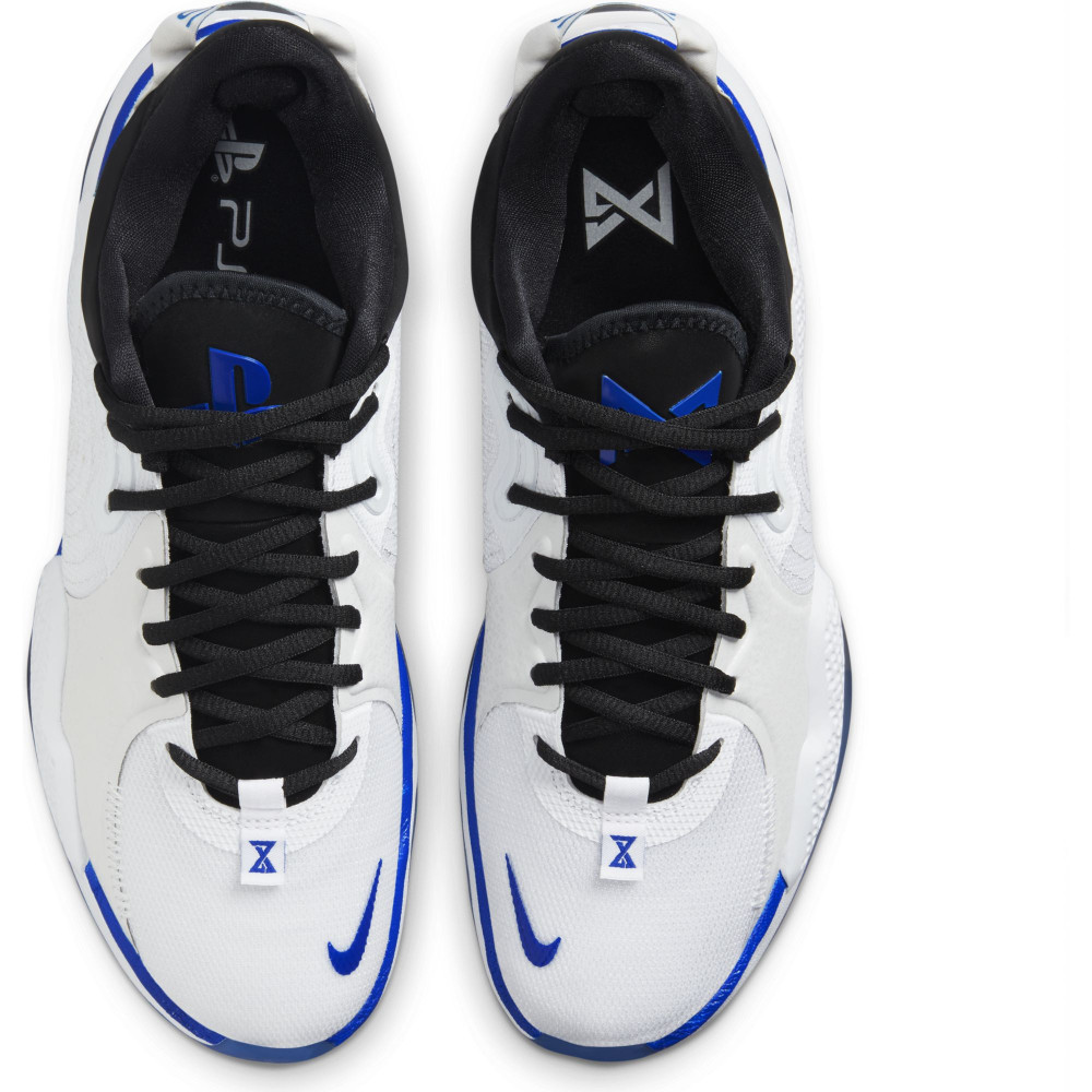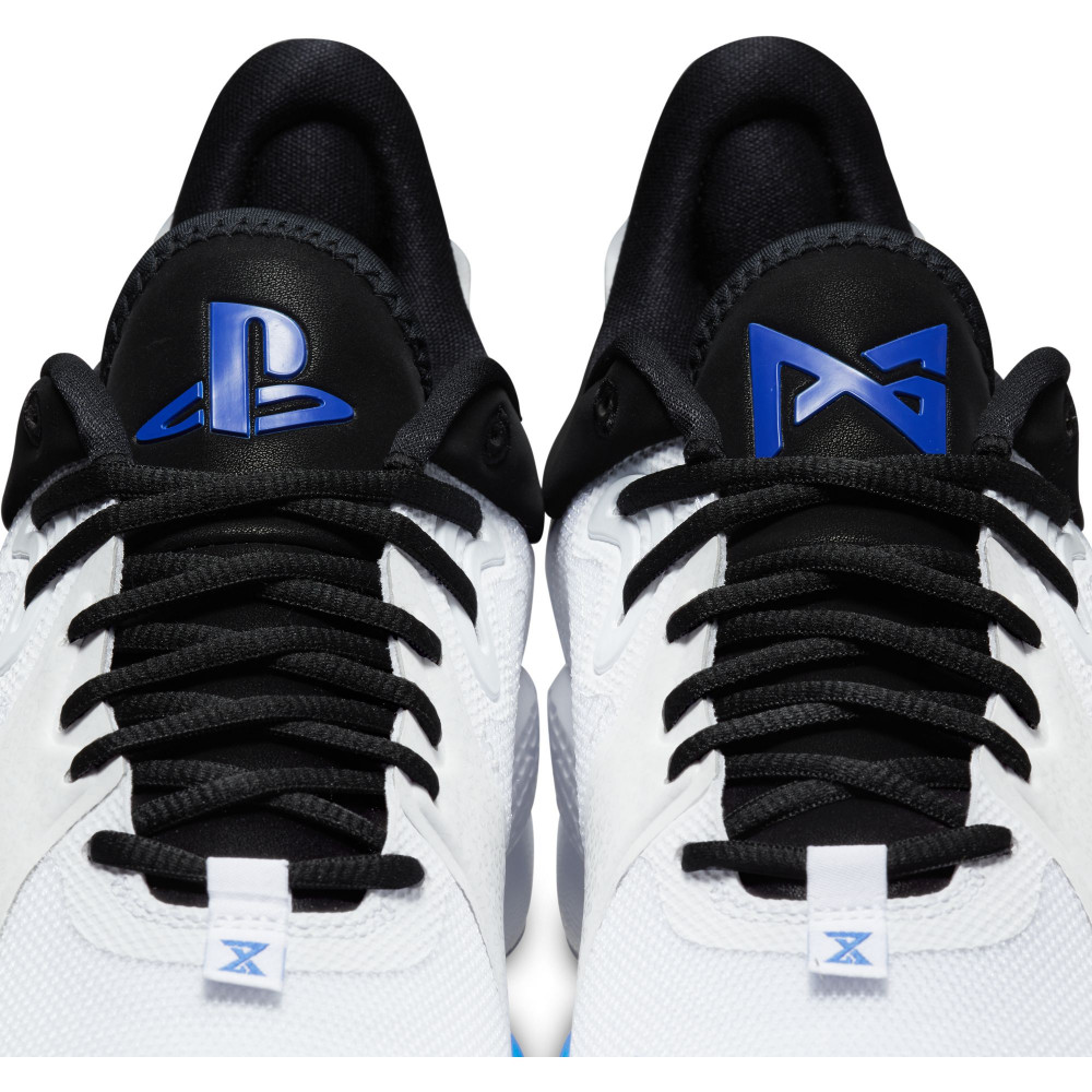 Sortie tout droit du Nike Lab, la PG5 PS5 devrait plaire à ton petit cousin fan de Gotaga ou à ton tonton idole des Air Mag de Marty Mc Fly. Une languette reprend le logo habituel des PG, l’autre celui de la console de chez Sony. L’alliage des couleurs est subtil et les touches de bleu nous plongent parfaitement dans l’univers de la marque, axant sur un coté bien plus futuriste que les anciennes collaborations entre le joueur, Nike et Playstation. Reprenant traits pour traits la charte graphique utilisé pour le design de la dernière console de salon, cette paire de chaussures a le mérite d’être bien plus fonctionnelle. Non, à l’inverse de la console de tes rêves, elle ne nécessitera pas de bouger trois meubles de ton salon pour lui laisser de la place, sauf si tu chausses du 54 comme le Shaq.