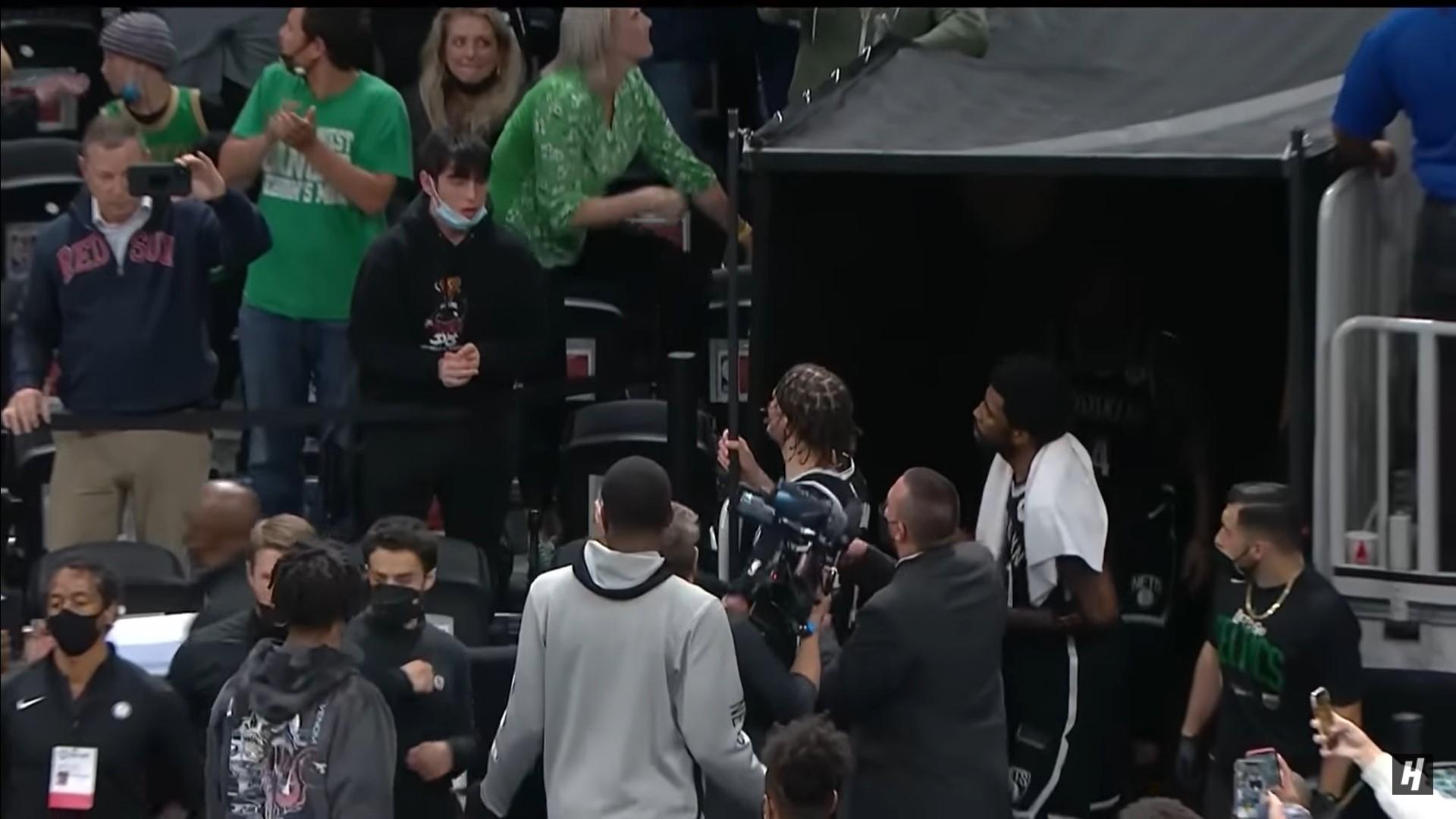 A bottle of water appeared to have been thrown at Kyrie Irving as the Nets were exiting the floor in Boston. pic.twitter.com/u6pZDCaArJ