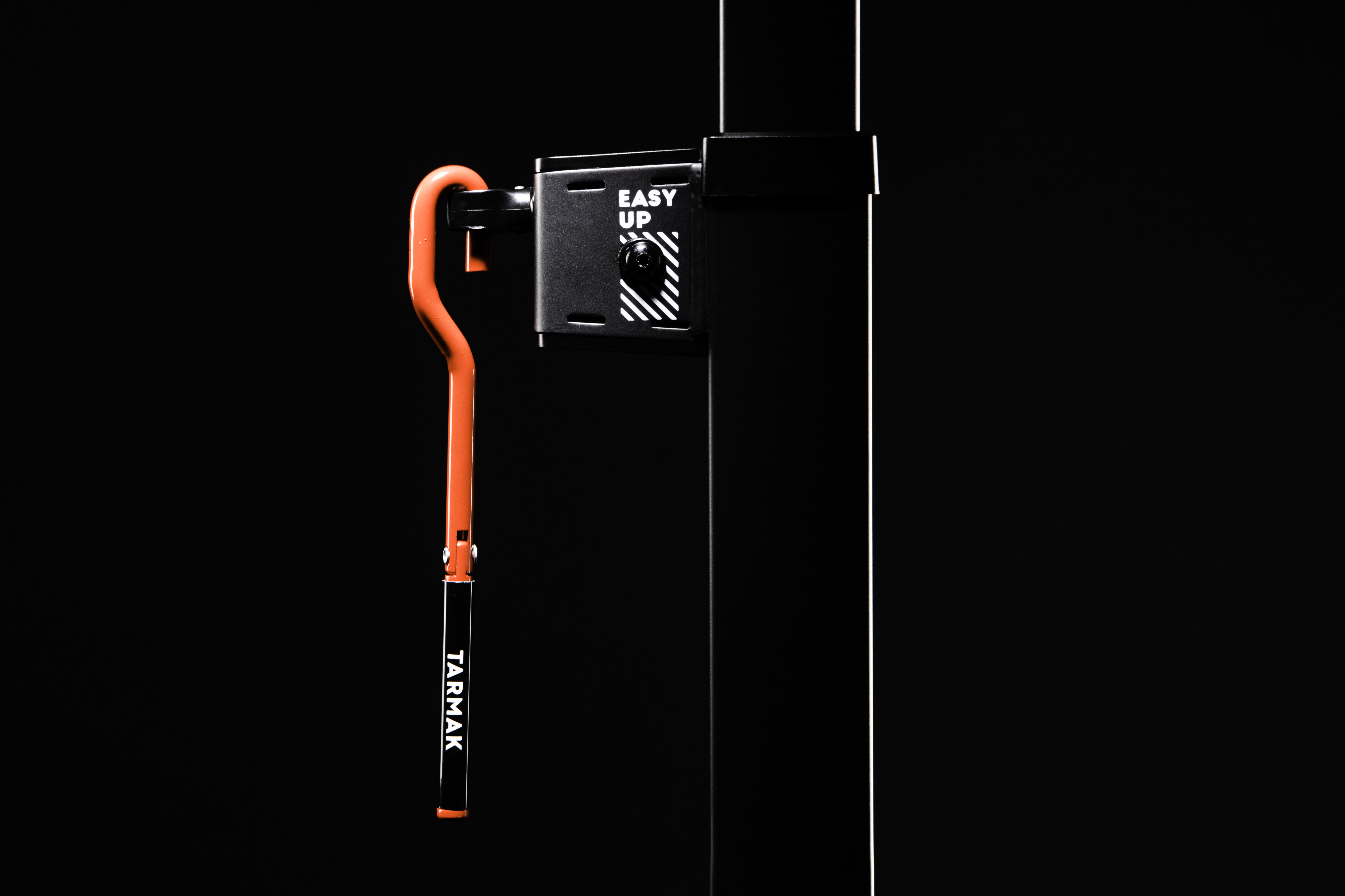 Déjà présent dans d’innombrables jardins avec des paniers de toutes les tailles et pour tous les niveaux, Tarmak revient avec une toute nouvelle technologie mise au service de la sécurité et de la simplicité d’utilisation : la gamme box. On ne parle pas du petit bout de cercle bancal qu’on accroche sur un bout de mur à peine plat. Il s’agit d’un vrai panier de basket conçu pour le domicile et adapté aux pratiquants les plus exigeants pour garantir les sensations du playground à la maison. Faites rouler votre panier jusqu’à l’emplacement souhaité, dépliez la structure et le cercle puis réglez la hauteur entre 2,40m et 3,05m sans effort à l’aide d’une manivelle. En 1 minute, le tour est joué et vous pouvez vous concentrer uniquement sur votre game. Si vous n’avez pas encore le range de Jordan Poole, la planche en polycarbonate de 3mm garantit une qualité de rebond optimale comme au gymnase. N’oubliez juste pas de prévenir avant l’impact pour qu’on ne vous taxe pas de chanceux. Et, luxe ultime, finies les vibrations interminables après un simple rebond contre la planche façon Tim Duncan. Les roues de lestage à remplir d’eau ou de sable garantissent une stabilité parfaite et facilitent le transport en fin de séance. Une fois votre workout terminé, rangez votre panier avant que Stephen Curry n’ait eu le temps de dégainer du parking. Protégé par sa housse, le panier est ultra compact et peut ensuite être entreposé discrètement (145x78x70cm).