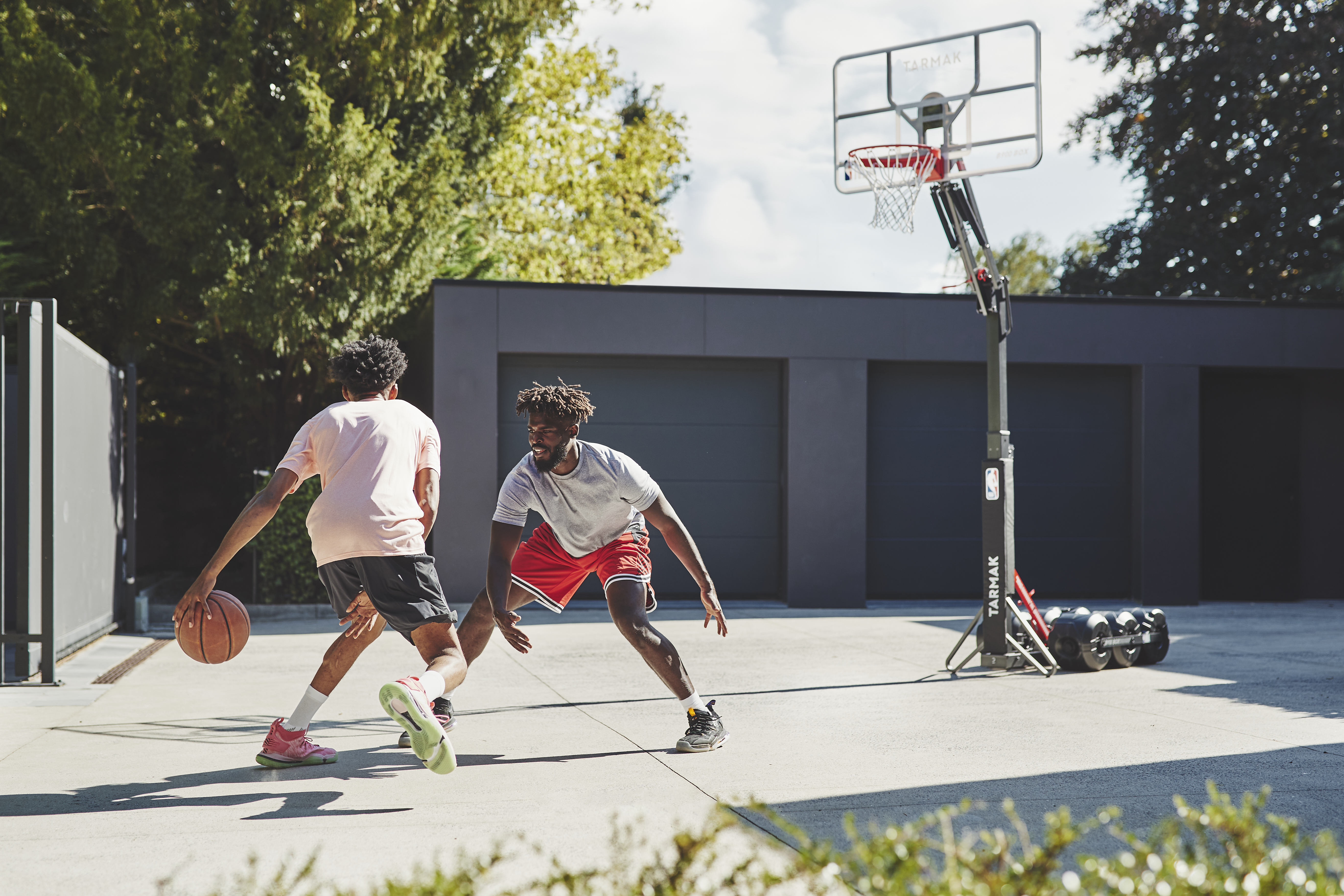Ça y est ! L’été est au coin de la rue, le soleil est fidèle au rendez-vous et les vacances sont à portée de bras. Plus que jamais, l’envie de taper un petit basket nous brûle le bout des doigts. Chaque fois, c’est la même chose. Les fans de tennis ont une soudaine envie de réserver un terrain pour placer leur meilleur revers lifté en matant les exploits de Rafa Nadal sur la terre battue de Roland Garros, ceux qui sont plus branchés vélo rêvent d’aller affronter la Planche des Belles Filles comme Tadej Pogacar en plein mois de juillet. Et nous ? Chaque objet qui rebondit est un bon prétexte pour s’essayer à quelques moves ou lancers hasardeux. Surtout durant des Finales NBA aussi hype que cette année. Mais parfois, le playground du quartier est blindé de monde ou tout simplement trop loin, et la température tape vite les 40 degrés sur le bitume alors on préfère rester chez nous, à la fraîche. Voici une bonne nouvelle pour vous, l’un n’empêche pas l’autre avec les derniers paniers de basket Tarmak. Et grâce à son système de rangement innovant, vous aurez même le temps de tout ranger pour accueillir Mamie Francine comme si de rien n’était pour la collation de 16h30. Bon, si elle peut juste éviter d’arriver pile quand vous avez la main chaude, c’est encore mieux.