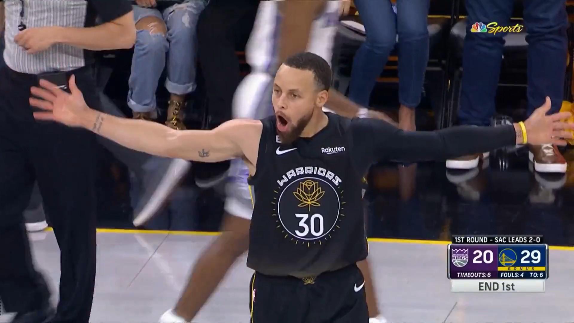 Profitant également de ce Game 3 pour grimper dans la hiérarchie des meilleurs scoreurs de l’histoire des Playoffs (16e all-time désormais), Stephen Curry a relancé les Warriors, et n’a pas manqué de faire une petite dédicace à la NBA en réponse à la suspension de Draymond. Bah oui, il est comme ça Steph. Toutes les sources de motivation sont bonnes, et cette nuit ce sont les Kings qui en ont payé le prix.